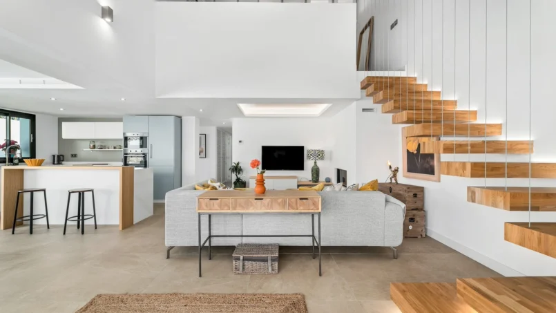 Accommodation of 65m², with separate double bedroom, spacious living room with integrated open plan kitchen, bathroom and with large garden and views to the pool.