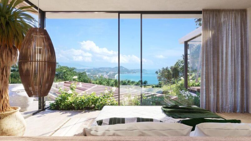 Accommodation of 65m², with separate double bedroom, spacious living room with integrated open plan kitchen, bathroom and with large garden and views to the pool.